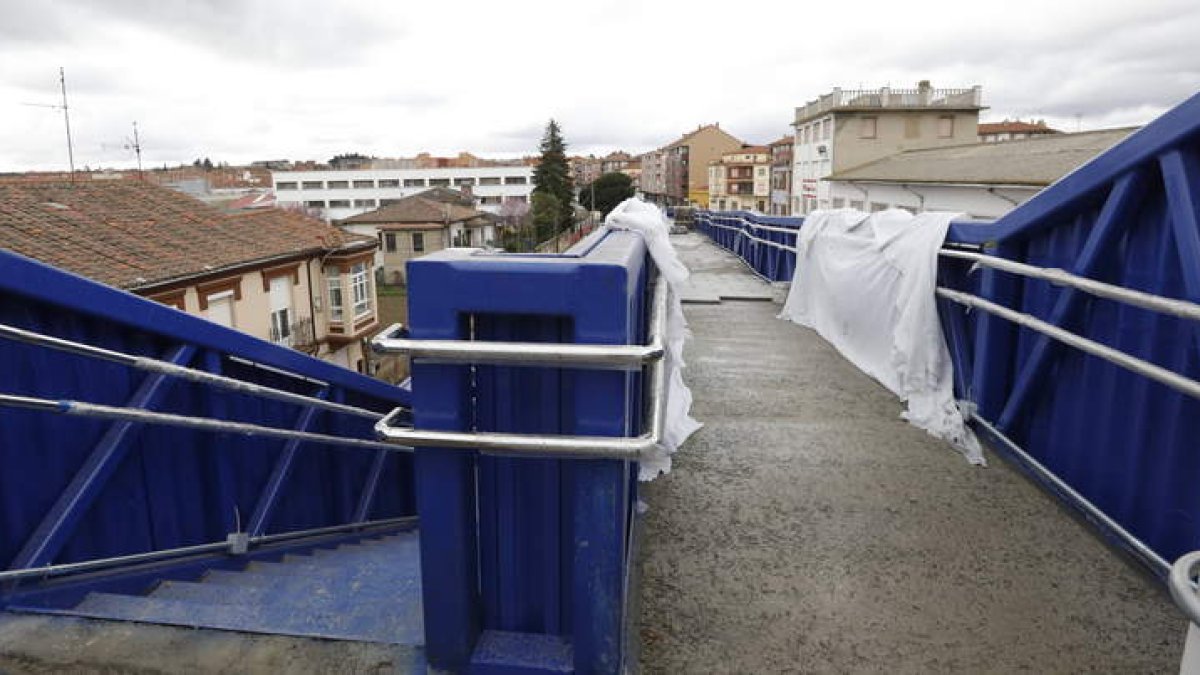 La alcaldesa ha recordado, a través de un comunicado, que un dictamen de Patrimonio obliga al administrador ferroviario a retirar la pasarela azul, "un armatoste en pleno Camino de Santiago que se levantó sin los permisos pertinentes, como ya reflejó el informe de la Comisión Territorial", ha insistido en sus críticas.