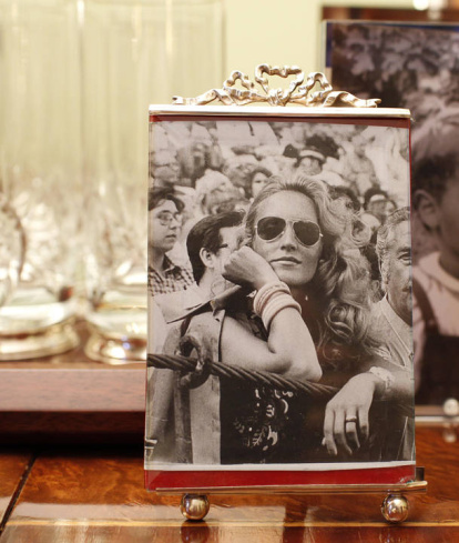 Una de las fotos preferidas de Carmen Lomana. Está con el diseñador John Galliano, en uno de los muebles de su residencia madrileña. La imagen enmarcada fue realizada durante una entrevista en 2010.