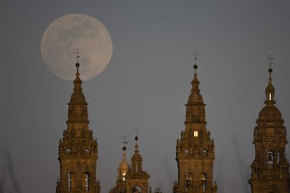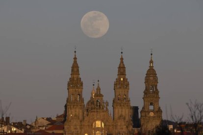 La Catedral de Santiago de Compostela luce esplendorosa bajo la luna llena.