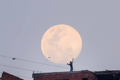 Fotografía de la luna llena este jueves en Caracas (Venezuela).