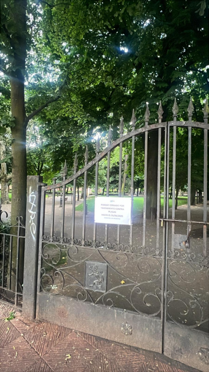 Los operarios de la empresa encargada de la privatización del servicio de Jardines trabajan estos días en la colocación del tratamiento preventivo en el interior del parque. La cautela que guía este tipo de intervenciones obliga a que tenga que cerrarse la instalación para evitar posibles intoxicaciones.
