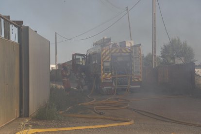 La llamada se recibió a media tarde. El operativo movilizó a dos camiones de bomberos hasta el polígono, donde el humo llamaba la atención desde la carretera de Zamora. La intervención de los bomberos de León evitó que las llamas, que habían prendido en el entorno de la zona descubierta, pasaran a la nave, ubicada en la zona sur del suelo industrial, ya en las inmediaciones del pueblo de Onzonilla.