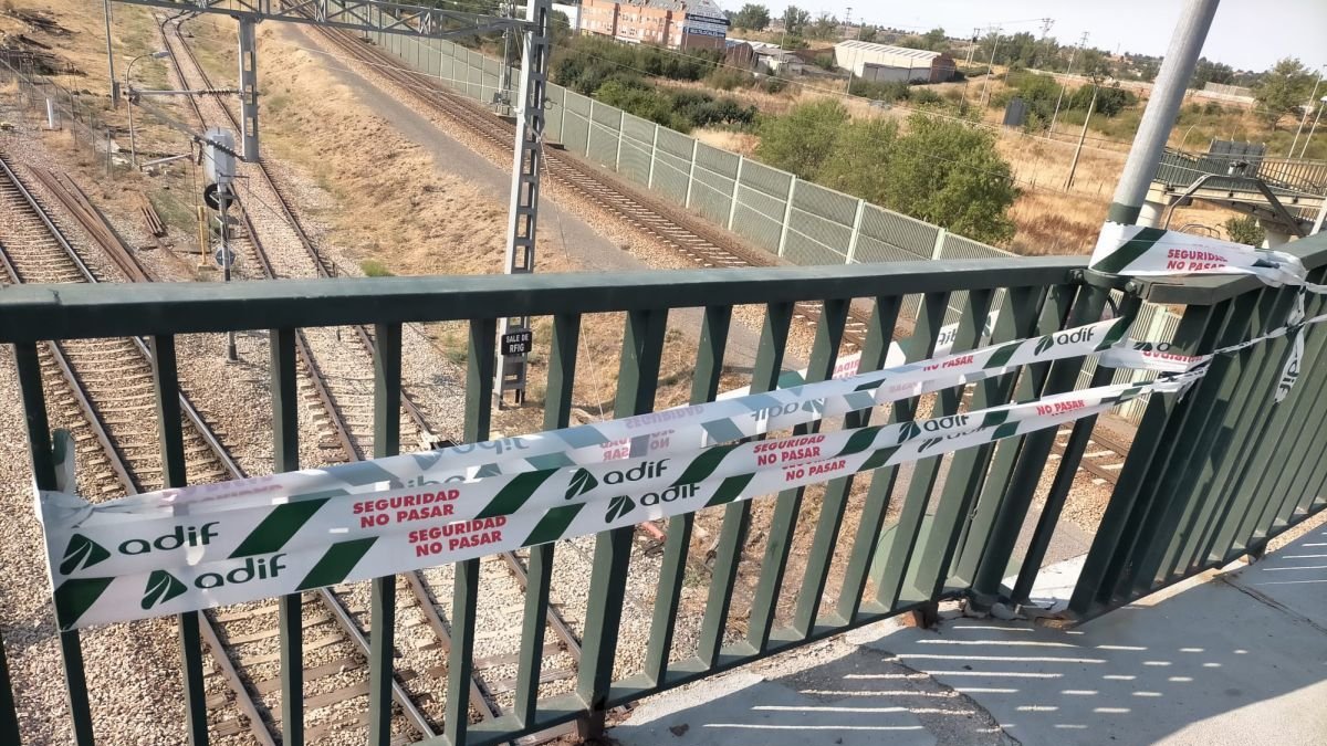 Los cortes relevantes a mediados de julio han dado paso a otro ritmo de intervención que permite el regreso de los trenes al cauce habitual. En la imagen, el aspecto que presentaba ayer la pasarela con la advertencia para los viandantes. Son situaciones que se repiten con más frecuencia de la que sería deseable.