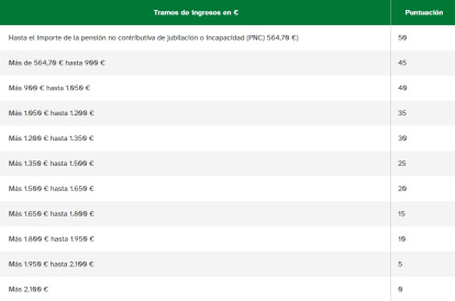 Tramos de los ingresos que favorecen una mayor puntuación.