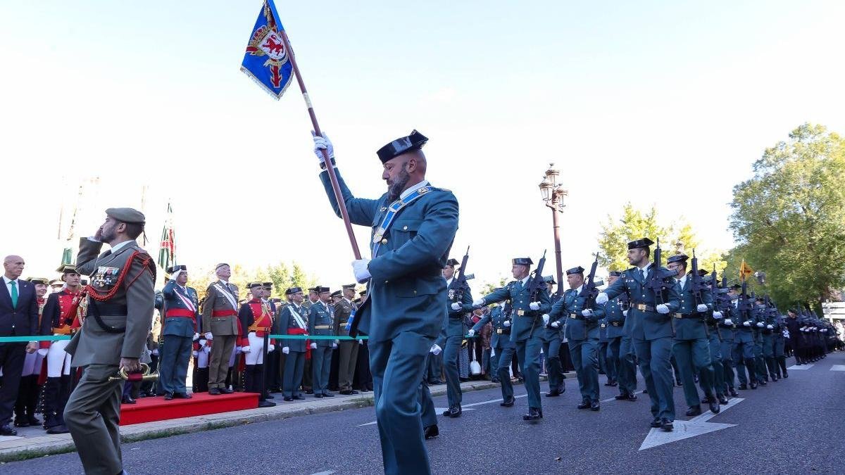 La Guardia Civil de León, con 1.300 agentes, celebró ayer su patrona, la Virgen del Pilar, con un acto que por primera vez se celebró en la plaza de San Marcos. El jefe de la 12 Zona de la Guardia Civil en Castilla y León, el general de brigada José Antonio Fernández de Luz de las Heras, remarcó la implicación de los guardias civiles en los incendios que asolaron la provincia este verano, cuando los agentes «alargaron sus jornadas y renunciaron a sus vacaciones para auxiliar a los ciudadanos». En la misma línea se manifestó el delegado del Gobierno, Nicanor Sen, quien valoró que en los incendios del verano «cuando miles de vecinos tuvieron que abandonar sus casas y allí estaban ellos, un brazo firme y una voz tranquilizadora, que cuidó de los pueblos cuando en ellos no había nadie. Os entregasteis sin medir el riesgo y sin pedir nada a cambio».