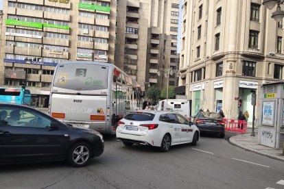 El plan de bacheado de urgencia que ha emprendido el ayuntamiento de León esta semana ya deja consecuencia en la tensión del tráfico en la zona centro. Mientras se acomete el tapado de agujeros en la calle Padre Isla, cerrada a la circulación para permitir este trabajo, se forman retenciones en torno a Santo Domingo.