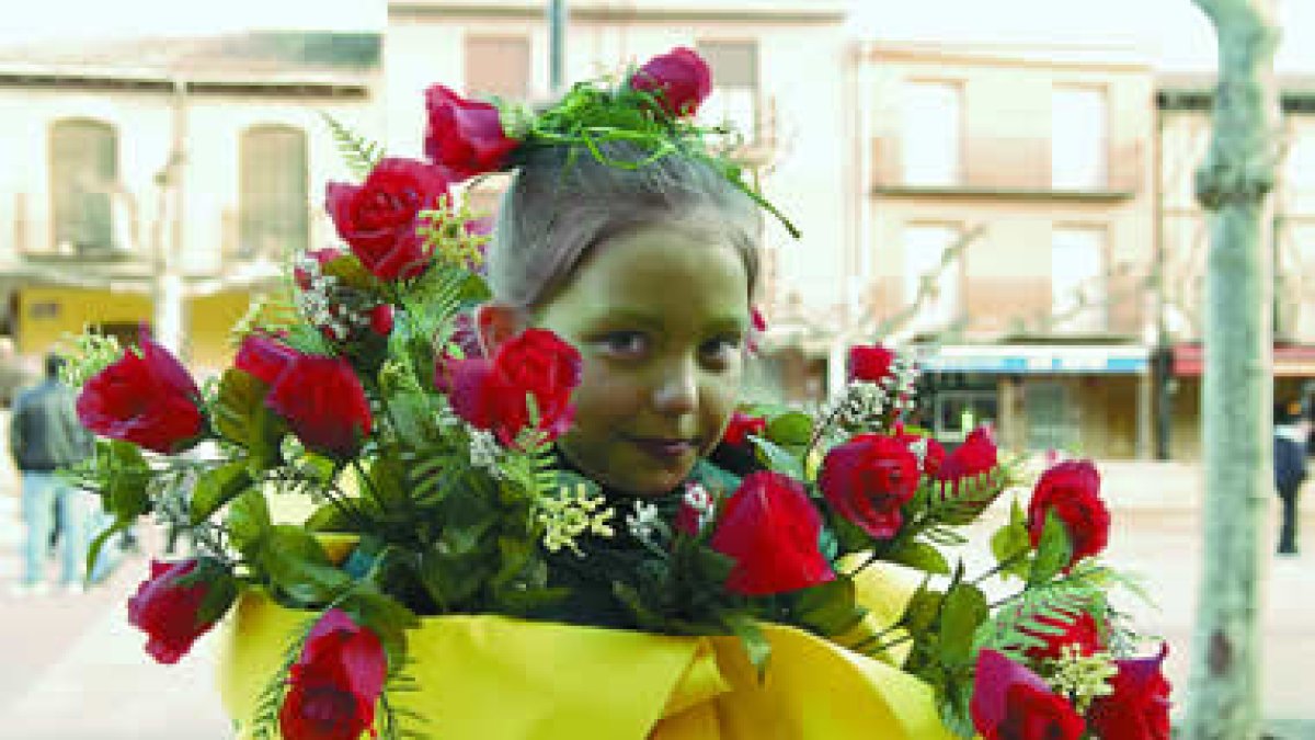 El frío no impidió que decenas de vecinos se echaran a la calle para mostrar en el gran desfile de Carnaval sus originales disfraces. Los más pequeños fueron los auténticos triunfadores de la tarde, no sólo en vistosidad, sino también en diversión. En la imagen, una niña disfrazada de ramo de rosas natural.