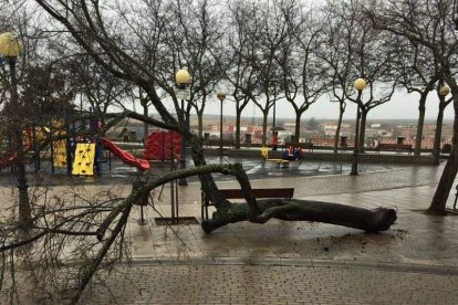 En la madrugada del sábado las fuertes rachas se llevaron por delante algunos árboles del parque infantil de La Muralla de Astorga y provocaron caídas de ramas y troncos en la carretera de Valdeviejas. El Ayuntamiento puso ayer en marcha un dispositivo para retirar de estas zonas los árboles partidos y garantizar la seguridad. Asimismo a partir de mañana se talarán algunos árboles que están enfermos y que representan un problema.