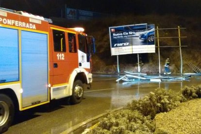 La caída de unas grandes valla publicitarias obligó a cortar anoche el tráfico en la calle Julio Laredo Blanco, en Ponferrada. JUAN C. FRANCO