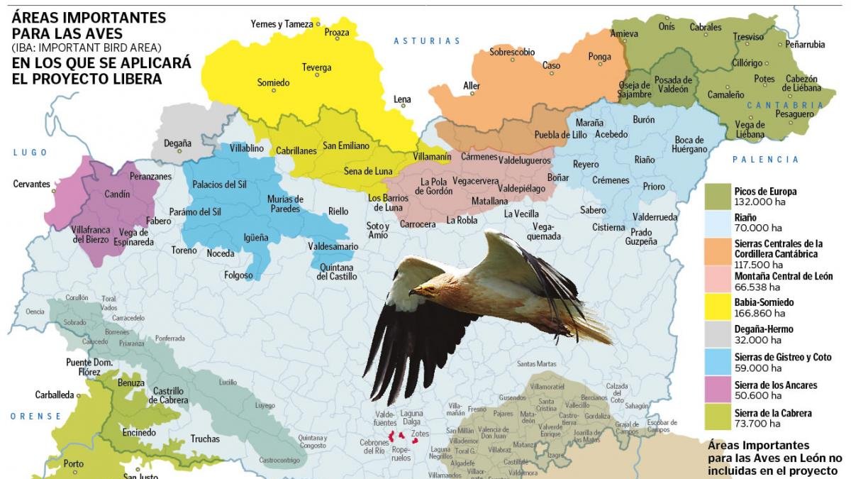 En la provincia leonesa sólo quedan fuera del estudio los espacios de interés para las aves de los Montes Aquilanos, Tierra de Campos y Páramo Bajo.