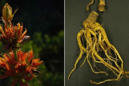La aurantiaca (izquierda) presenta flores anaranjadas. A la derecha, una raíz. O.G.L.