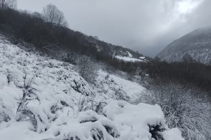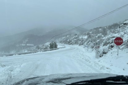 La nieve cubre la montaña de León en el puerto de Pajares y la comarca de los Argüellos