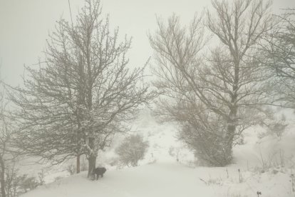 Un perro pasea en la nieve en Tolibia de Abajo.