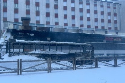 Un autobús de transporte escolar procedente de Galicia ha ardido a primera hora de esta mañana en la estación invernal de San Isidro. El suceso no ha producido daños personales y no hay ningún herido.