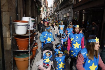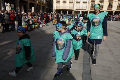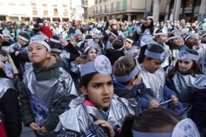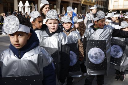 El momento más esperado llegó con el pregón, leído por un grupo de niños y niñas de los distintos colegios, que transformaron la Plaza Mayor en un auténtico universo festivo. «Hoy no mandan los libros, ni los deberes, ni el despertador», proclamaron entre aplausos, anunciando un carnaval «astronómico y sideral» en el que todos los centros se unían «formando un sistema jamás conocido».