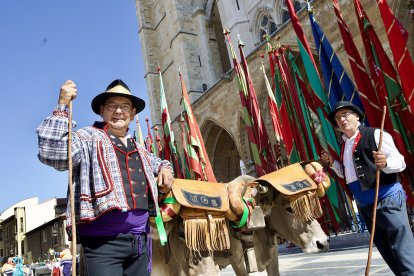 Y los pendones volvieron a hacerlo. Y lo hicieron de la mano de los pueblos. De esas pequeñas localidades que salpican el territorio leonés y que cada San Froilán, uniendo a varias generaciones, sacan a la calle sus enseñas para elevar a lo más alto la tradición leonesa. Con ellos, los carros engalanados, tirados por vacas, bueyes, caballos o burros.