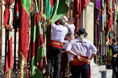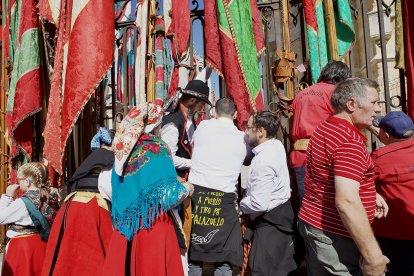 Más de 300 pendones y pendonetas, que representan a más de 210 pueblos de toda la provincia de León, se elevaron orgullosos de la mano de sus porteadores. Grupos grandes o pequeños, de gente mayor o de padres jóvenes tirando de sus bebés en el carrito mientras esperan poder coger la vara que identifica a su pueblo, que se diferencia del resto por el color de la enseña y de la camiseta o camisa de sus porteadores. Pero al final, llegados desde todos los puntos de la provincia, todos hacen honor a cumplir con la tradición leonesa, la que San Froilán es capaz de revivir.