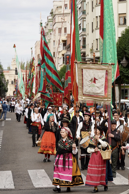 El desfile de pendones concejiles de León reúne a 357 varas en representación de más de 230 pueblos.