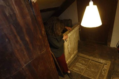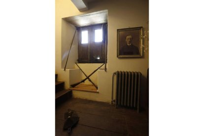 Arriba, otra tronera, esta vez en el suelo, para apuntar a posibles atracadores. En la pared cuelga aún un retrato de Andrés Rodríguez de Cela. Sobre estas líneas, una de las trampillas para subir el dinero al desván. JESÚS