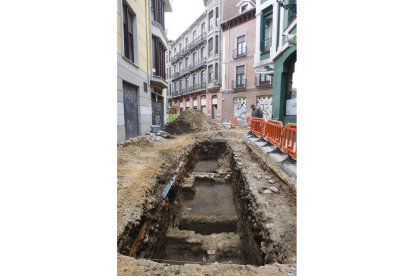 Restos de una cloaca romana encontrados en la zona de la plaza del Conde Luna