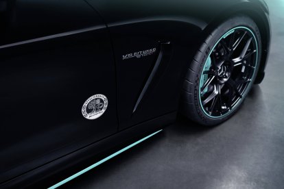 Las llantas AMG de 21 pulgadas (neumáticos 295/30 ZR 21 delante y 305/30 ZR 21 detrás), de radios cruzados y con acabado negro mate, acentúan su diseño con el característico tono verdoso del patrocinador del equipo; lo mismo que las pinzas de frenos cerámicos: fijas de 6 pistones en las ruedas delanteras y flotantes monopistón en las traseras.