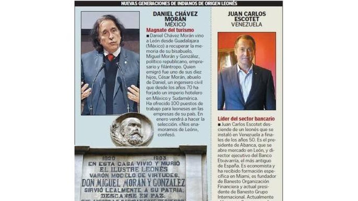 España Las nuevas generaciones de indianos de origen leonés Facebook Twitter Whatsapp Whatsapp Telegram Copiar enlace Comentarios Publicado por Redacción León Creado: 09.11.2014 | 14:18 Actualizado: 09.11.2014 | 14:18 En: Juan Carlos Escotet Así son Daniel Chávez Morán y Juan Carlos Escotet Ver comentarios Debes habilitar JavaScript en tu navegador para poder ver los comentarios.