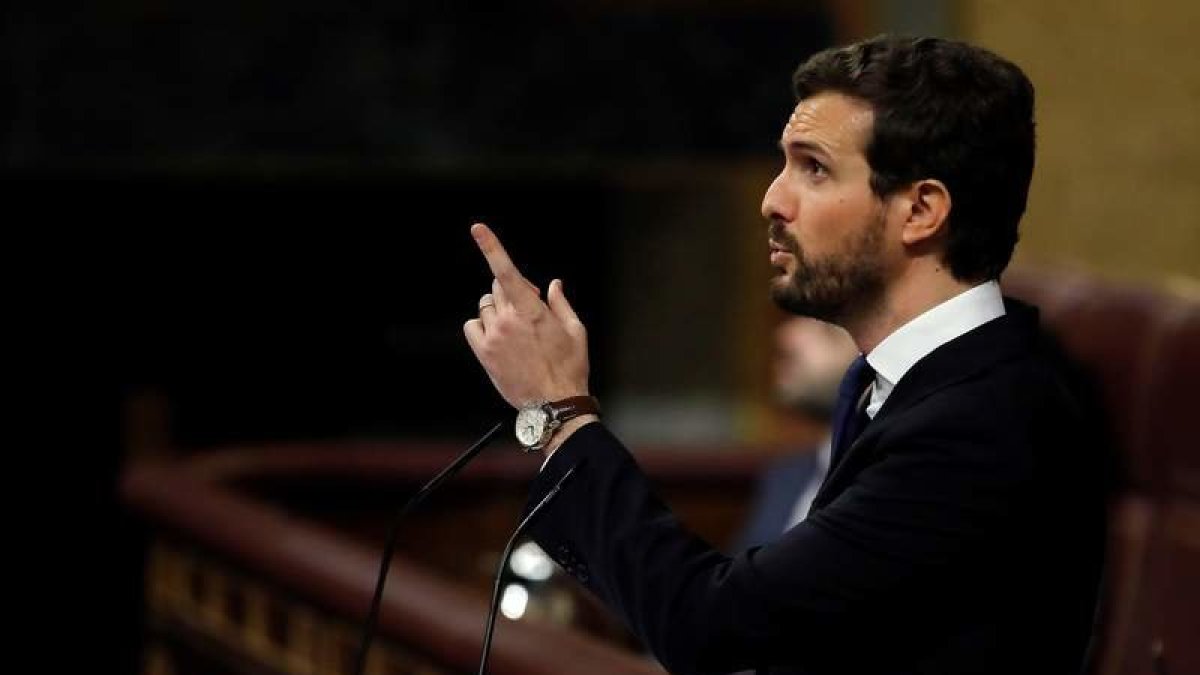 Por si cabía alguna duda, el presidente del PP dijo que en ningún caso estaba dispuesto a abstenerse en la investidura del candidato socialista al que situó fuera de la Constitución y acusó de «resucitar» la sentencia del procés y de quebrar la unidad de los españoles al anunciar una mesa bilateral entre el Gobierno y el Ejecutivo catalán. Casado, que negó que exista un conflicto territorial o político sino otro de índole moral, afeó al presidente en funciones que hablase de «dejar atrás la deriva judicial». Y le volvió a advertir del riesgo de negociar con quienes «pretenden destruir» España. «Podrá arañar la nación -aseveró el líder de los populares-, pero no conseguirá acabar con ella».