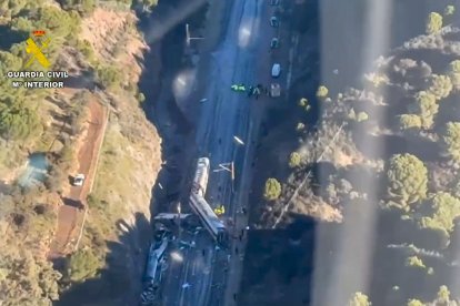 Imagen de uno de los dos trenes que han descarrilado a la altura de Adamuz, Córdoba, este domingo 18 de enero de 2026.