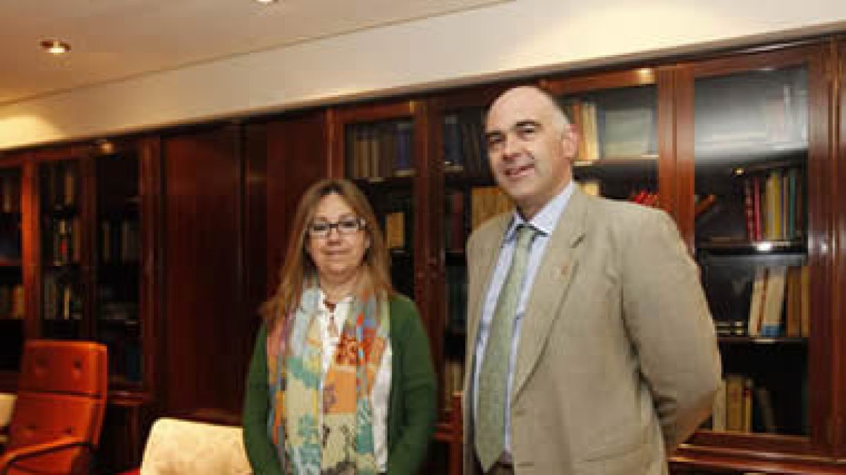 La presidenta de Red Madre León, Teresa Cabeza, y el presidente del Colegio de Farmacéuticos, Antonio Carrasco, firman en el colegio profesional el convenio para que las 320 oficinas de la provincia informen de las actividades de apoyo psicológico y de ayuda a las mujeres embarazadas. La farmacia es el primer eslabón sanitario al que recurren las usuarias.