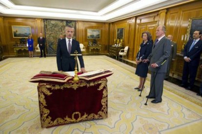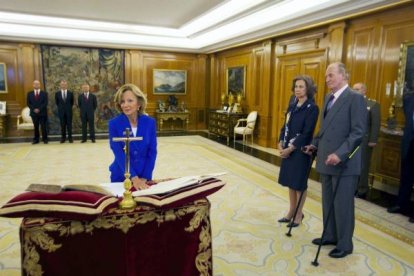 Sociedad Los nuevos ministros prometen sus cargos ante el Rey Facebook Twitter Whatsapp Whatsapp Telegram Copiar enlace Comentarios Publicado por EFE Creado: 12.07.2011 | 21:43 Actualizado: 12.07.2011 | 21:43 Ver comentarios Debes habilitar JavaScript en tu navegador para poder ver los comentarios.