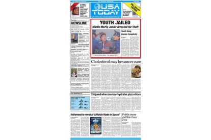 El diario ha acompañado su edición diaria, en papel, con un una portada 'extra' que recubre la real. Esta reproduce, casi por completo, la portada del filme. Mantiene la noticia principal "Marty McFly Júnior es arrestado por robo" y otros titulares como "El colesterol puede ser la cura del cáncer". Hay pequeños cambios respecto a la original. Han suprimido la noticia en la que se hacía referencia a la inminente visita de la "Reina Diana" a Washington. En su lugar, el diario ha puesto una nota de opinión sobre la libertad de expresión. 'USA Today' también ha agregado una noticia sobre un 'remake' de la película, filme nunca rodado y que protagonizaría, según la ficticia noticia, un tal George McFly, pariente de los anteriores protagonistas.