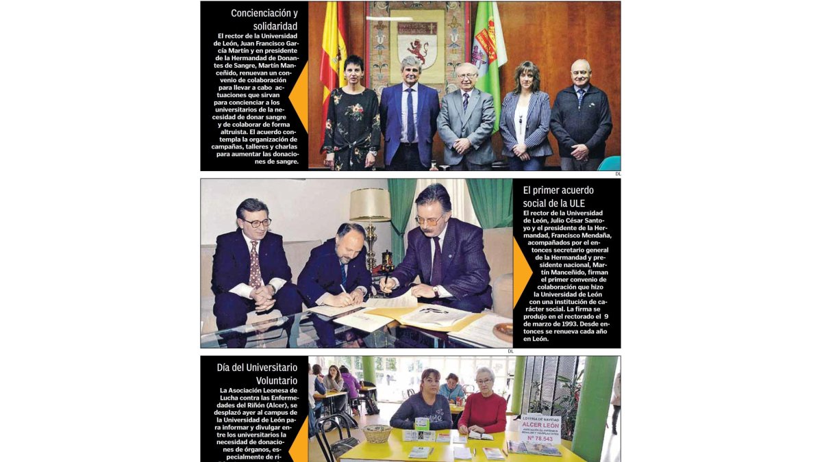 El primer convenio de colaboración entre el entonces rector Julio César Santoyo y el presidente de la Hermandad, Francisco Mendaña, supuso un antes y un después. Manceñido destaca que la Universidad de León es el «escenario de vital interés» por la captación de nuevos donantes más jóvenes y «la tranquilidad de saber que la permanencia está asegurada para el futuro».