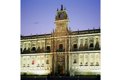 Convertida en imagen de marca de Paradores, la fachada del Parador de León es conocida en todo el mundo e identificada de manera inmediata con la ciudad. Esa portada representa uno de los conjuntos más importantes de la arquitectura española del Renacimiento. Su riqueza escultórica e iconográfica sirve, como se planeó, al propósito de exaltación de la grandeza de la Orden de Santiago y de la España imperial de Carlos V. Fue iniciada en 1531 y en las tallas que conforman su programa ornamental participaron afamados escultores franceses, como Juan de Juni, Juan de Angés, Guillén Doncel y Esteban Jamete.