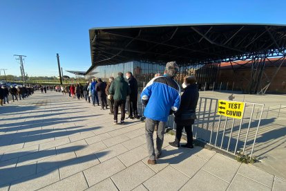 Comienza en el Palacio de Exposiciones de León la semana de vacunación masiva para las personas que tienen entre los 63 y 65 años cumplidos de toda la provincia, excepto del área sanitaria del Bierzo. Atención Primaria ha organizado una semana de inmunización para avanzar en la estrategia que permita conseguir cuanto antes la inmunidad de rebaño y cercar el avance del coronavirus. A esta hora hay una gran afluencia de público con una larga cola de personas que acuden al llamamiento de Sanidad, que hoy ha comenzado con media hora de adelanto sobre lo previsto. Para una mejor organización, el horario de la campaña, de 09.00 a 14.00 horas, se ha programado por apellidos. Hoy les corresponde a los que empiezan entre la A y la E; mañana martes están llamados de la F a la G; el miércoles acudirán los de la H a la M; el jueves de la N a la R; y el viernes, último día de este llamamiento masivo, de la S a la Z. Todas las personas de este grupo de edad serán vacunados con Astra Zeneca.
