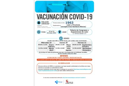 Está vacunación masiva en el Palacio de Exposiciones coincide con las programadas para personas nacidas en 1962 y 1961en Astorga, La Bañeza, Valencia de Don Juan, La Magdalena, Valderas, Santa María del Páramo y Benavides de Órbigo.