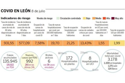 Cerca del 70% de los nuevos contagios que se producen en Castilla y León son de las nuevas variantes de ómicron (BA.4 o BA.5, que ya son dominantes. El último dato provincializado corresponde al 15 de junio. En esa fecha el 20% de los contagios se producían en la provincia de León ya correspondían a la variante BA.5.