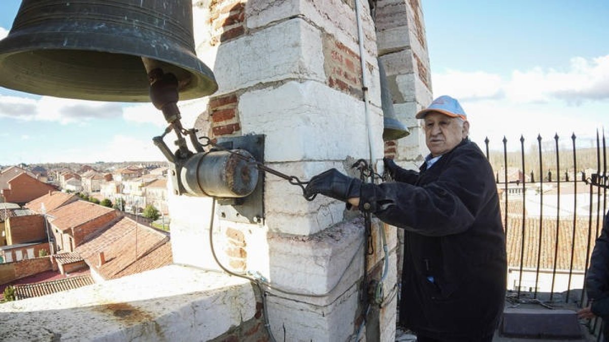 Pedro Delgado, el maestro campanero de Villabalter, celebró este sábado la declaración como Patrimonio Cultural Inmaterial de la Humanidad del toque manual de campanas con la que, asegura, será su última subida al campanario.