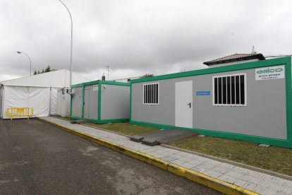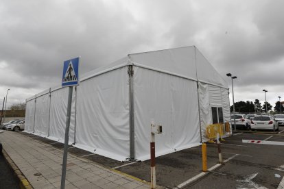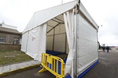 Hospital de campaña en el exterior del Hospital de León, carpa de triaje durante 2020