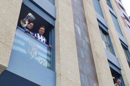 Ponferrada anima desde los balcones a su equipo durante el confinamiento de 2020