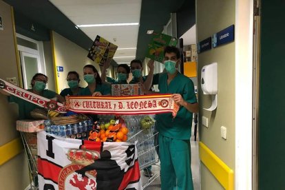 La Peña de la Cultural Guzmán el Bueno entrega alimentos en el Hospital de León durante el confinamiento de 2020