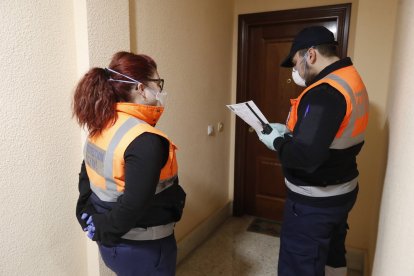 Fátima y Ricardo, voluntarios de Protección Civil, realizan compra básica durante el confinamiento de 2020