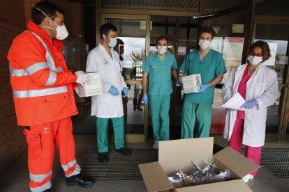 La agrupación Makers Bierzo, personal de gráficas Ponferrada y los Bomberos de Ponferrada hacen entrega de material sanitario al Hospital del Bierzo