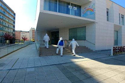 Bomberos de Ponferrada desinfectan las instalaciones de la residencia Las Encinas de Ponferrada durante el confinamiento de 2020