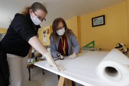Voluntarios confeccionan mascarillas en Carrizo de la Ribera bajo la tutela del diseñador Di de Sant durante el confinamiento de 2020