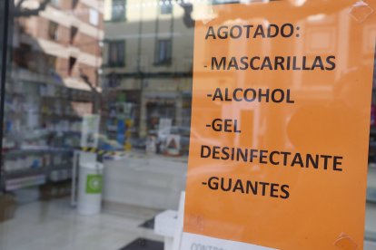 Venta de alcohol en una farmacia de León durante el confinamiento en 2020
