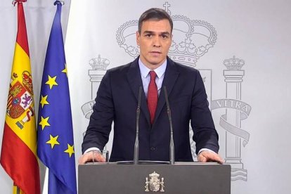 Captura de vídeo del presidente del Gobierno, Pedro Sánchez declarando el estado de alarma