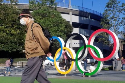 Un hombre protegido por una máscara para evitar posibles contagios en Tokio durante el confinamiento de 2020