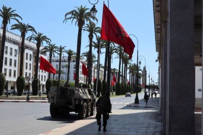 Vehículos militares estacionados en el centro de Rabat durante la pandemia de covi en 2020