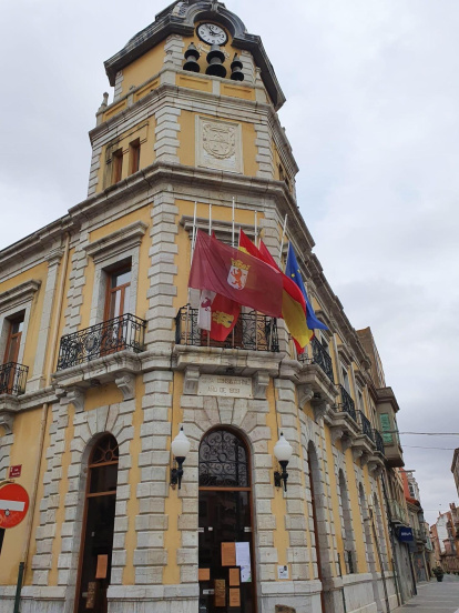 Las banderas en el Ayuntamiento de La Bañeza ondean a media asta por los fallecidos por el coronavirus en 2020