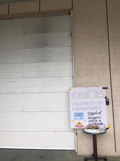 La empresa de pasteles Gerboles reparte dulces a los transportistas en Ponferrada durante el confinamiento de 2020